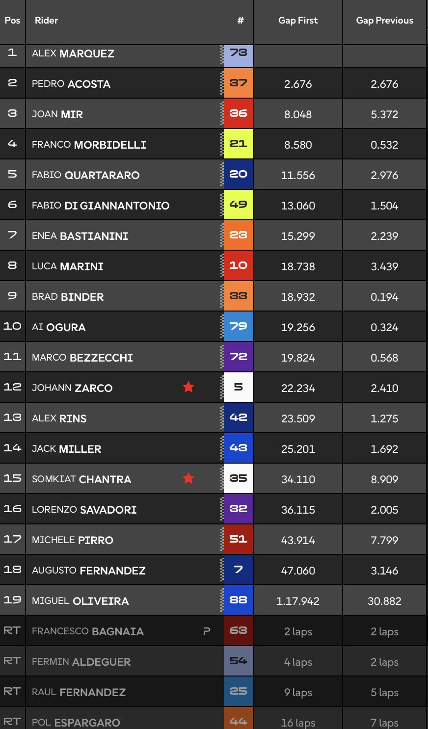 Otro de los favoritos es precisamente su compañero de equipo y también recién coronado rookie del año. El murciano terminó tercero en la sprint de este sábado, pero una sanción por presión de neumáticos le acabó dando el podio a su paisano, Pedro Acosta.