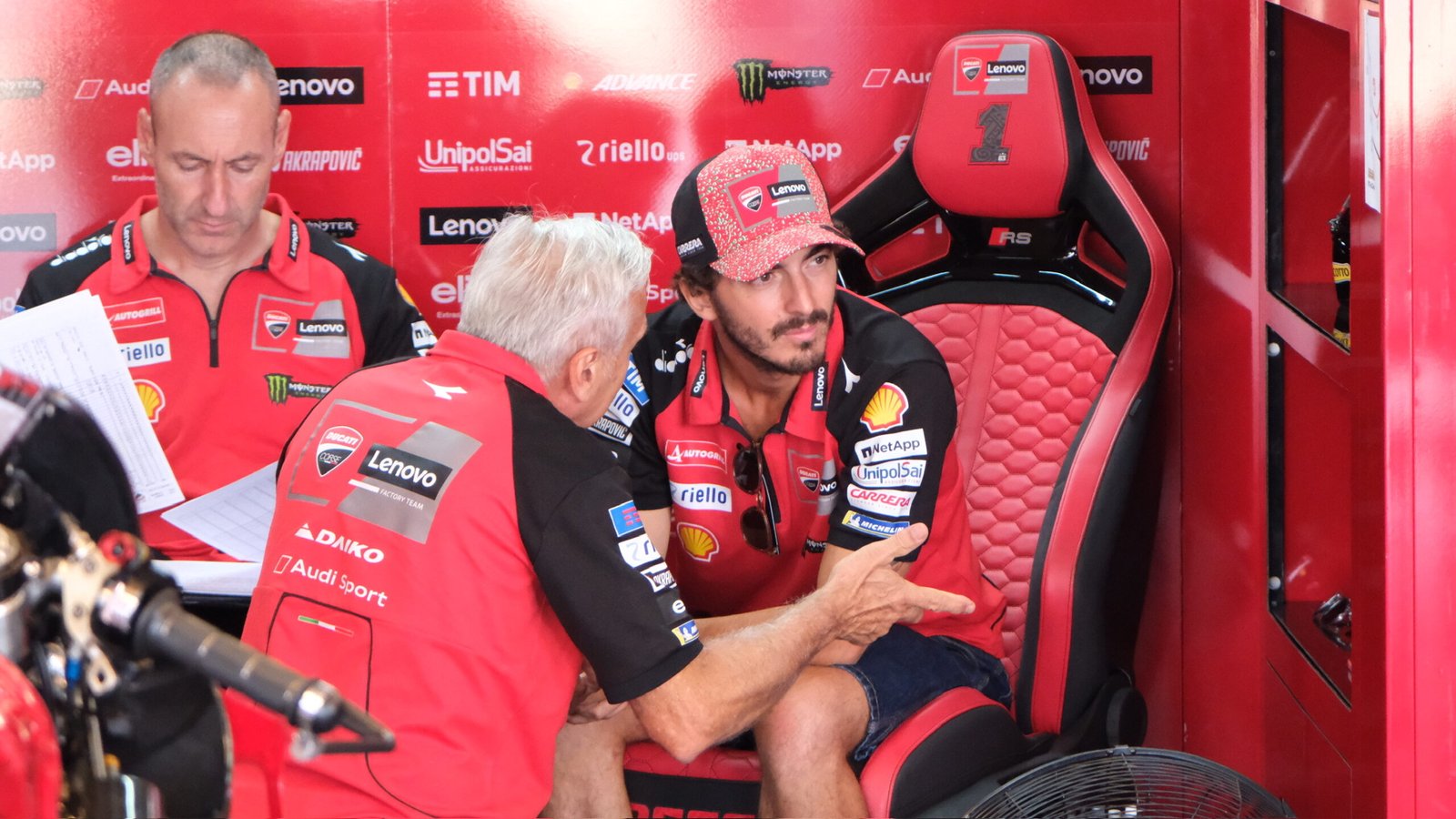 Precisamente el italiano acabó muy decepcionado después del nuevo cero que llega en un momento importante de la temporada, con seis citas por delante para acabar la temporada y un objetivo intacto, ser campeón. “A Pecco le he dicho que me disgusta la caída, pero que hablamos en los próximos días, cuando todos estemos más calmados y serenos. Le he dicho que tenía la velocidad, que es nuestro campeón, que no tenemos dudas de que se jugará el Mundial hasta el final y que hablaremos cuando hayamos visto los datos y estemos serenos y tranquilos. Cuando hayamos visto una, dos, tres y cuatro veces la carrera. En este momento hay que estar contento por Enea y punto. Con un campeón que tiene la certeza de ser un campeón, no hay problema”.