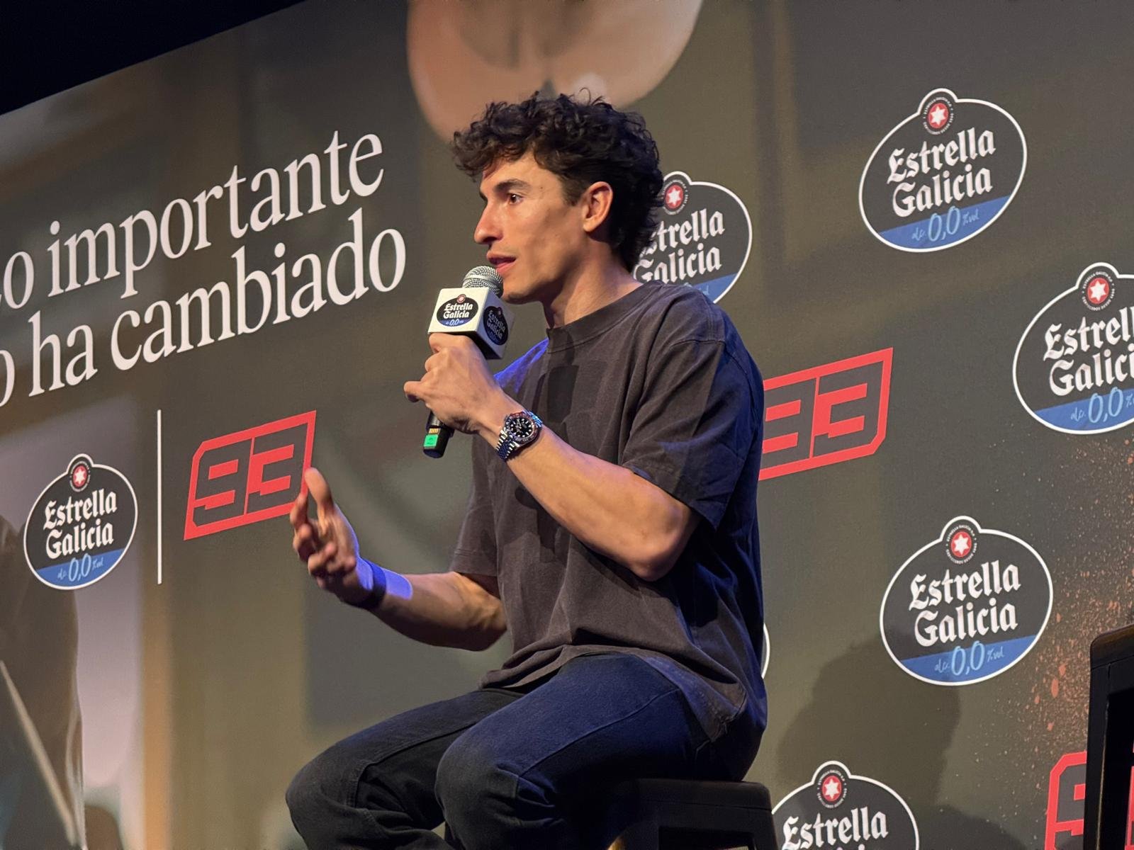 Con un calendario muy ocupado y con poco espacio entre compromisos, la primera pregunta era clara; ¿Cómo se encuentra Marc?: “Muy bien la verdad. Preparados para llegar al Gran Premio de Jerez, el Gran Premio Estrella Galicia 0,0. Logré el primer podio de la temporada allí el año pasado, esta temporada llegamos en un momento de forma muy diferente, hemos empezado la temporada bien, confiados y con buenos resultados y esperemos e intentaremos mantener la buena dinámica en Jerez”, pero rebaja las expectativas previas: “Eso no significa ganar si o si, estar en las tres primeras posiciones será el primer objetivo del fin de semana”, asegurando estar: “Con ganas de sentir el ambiente y ese chup-chup de la afición española”.
