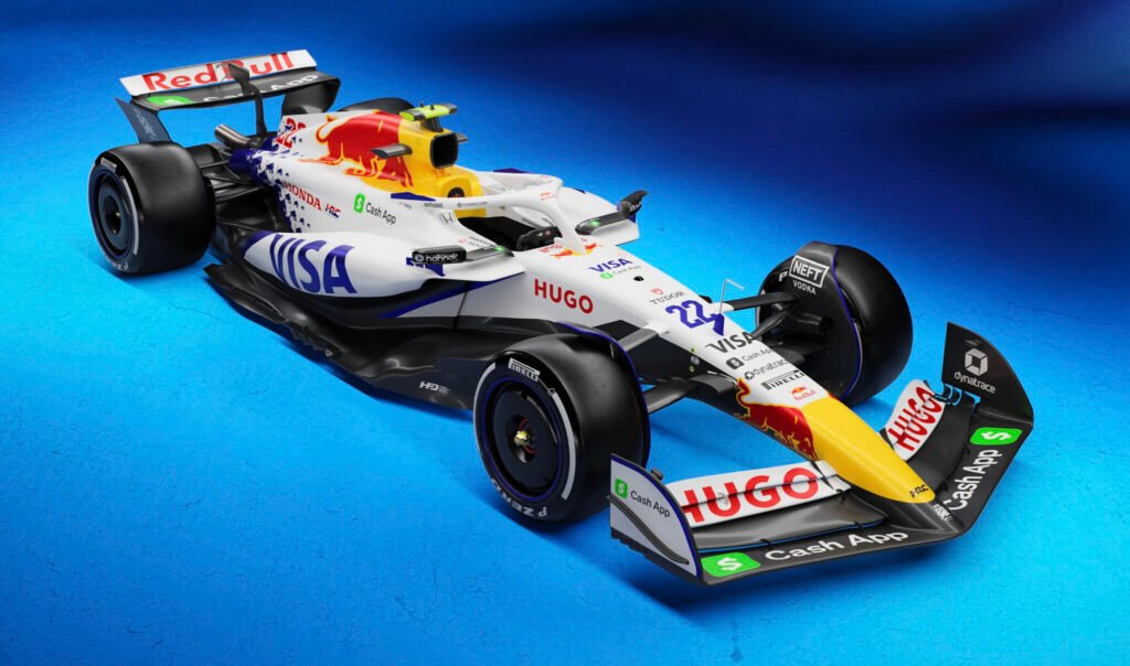 El RB Visa Cash Bulls reivindicaba su nombre al inicio de su temporada para intentar que el nombre Toro Rosso quedase en el pasado, para después presentar a su nuevo dúo,Yuki Tsunoda, que sin duda querrá revancha después de que Red Bull no le escogiese a él como segundo piloto, y Isack Hadjar, otro de los novatos que llega con muchas ganas a la parrilla dentro de la familia Red Bull. La decoración sorprendía con el blanco y el logo de la marca destacando.