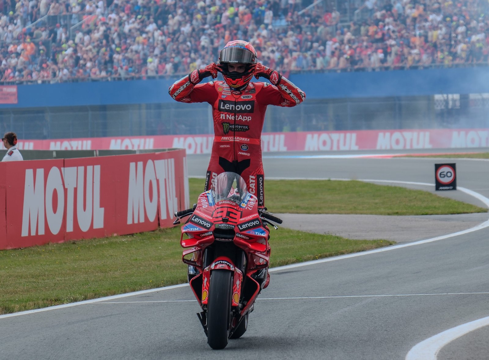 Marc Márquez se impone en la carrera sprint de Sachsenring 2025 tras recuperarse de un susto en la salida. Marco Bezzecchi y Fabio Quartararo completan el podio.