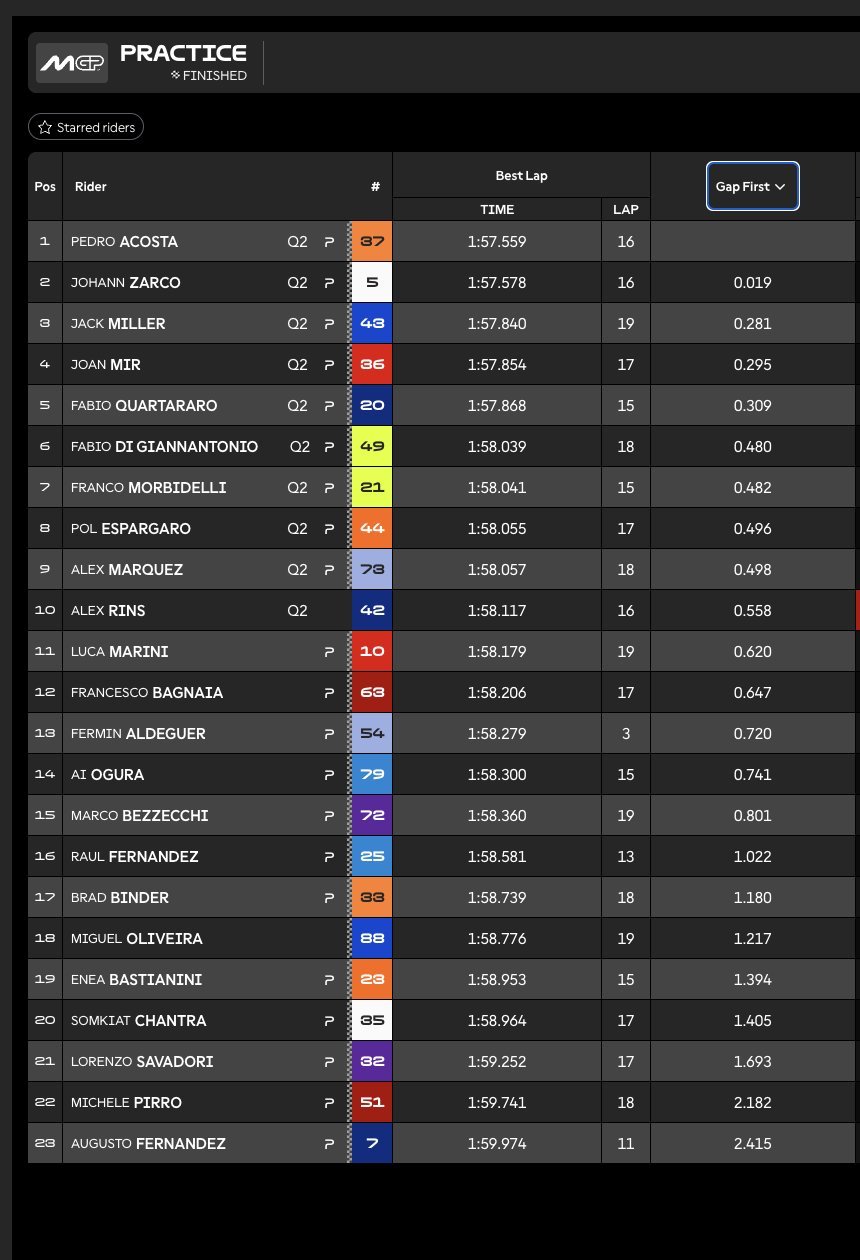 📊 Resultados de la Práctica del GP de Malasia de MotoGP 2025