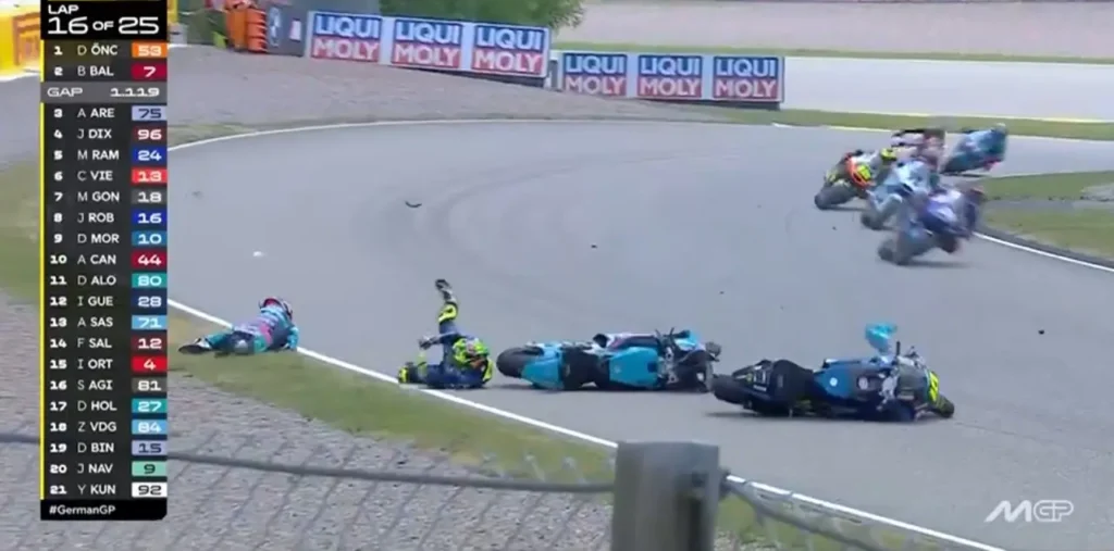 La carrera de Moto2 en Sachsenring fue un auténtico torbellino de emociones y dejó imágenes para el recuerdo… y otras para olvidar. Uno de los protagonistas fue Diogo Moreira, que pasó de firmar una remontada histórica a terminar en el suelo y con una sanción que le complicará el próximo Gran Premio.