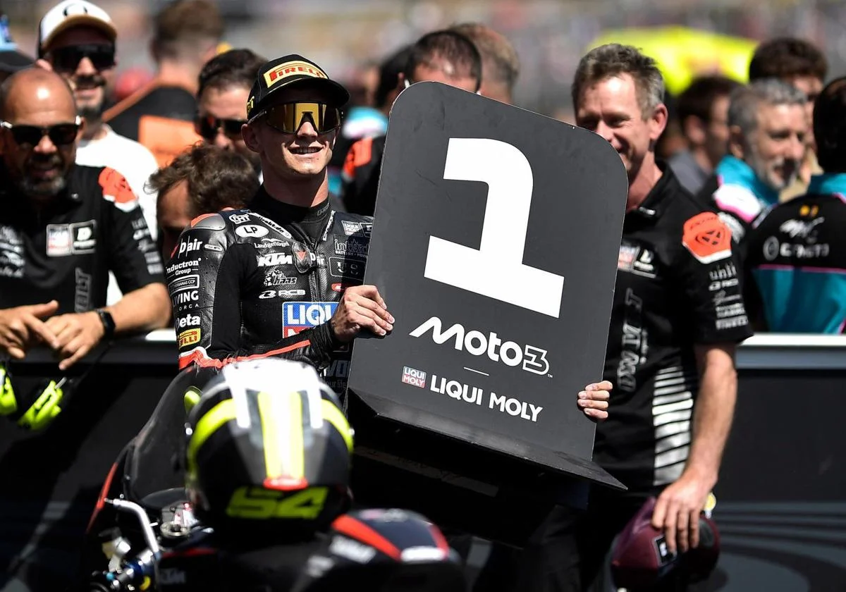 Muñoz se colocaba al frente tras un brillante adelantamiento en la primera curva. Poco después, un susto de Furusato rompía el grupo, dividiendo la carrera en dos. La batalla por el podio se volvía intensa, con ataques al límite en la última curva. Fue entonces cuando llegó el toque entre Quiles y Rueda, mientras Muñoz ya lideraba con ventaja. El japonés acababa en el suelo, dejando a Muñoz, Quiles y Rueda como únicos candidatos al podio. El sevillano no falló: sumó su segunda victoria del año, ondeando la bandera de Borja Gómez, siempre presente en su memoria.